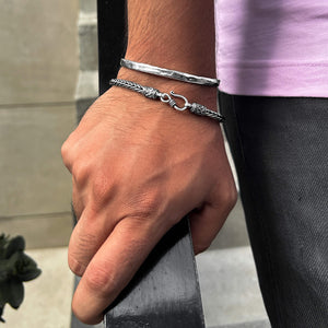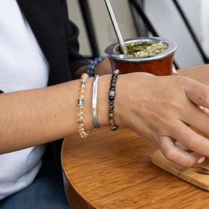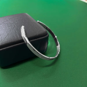 Este brazalete está elaborado en plata esterlina 925 con un elegante diseño martillado que le aporta textura sin recargarlo. Su ajuste regulable y forma abierta hacen que resulte fácil de llevar y combinar, ideal para usar solo o junto a otros accesorios.